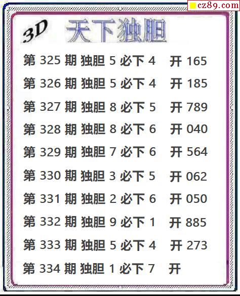 天下独胆2025334期3d图谜