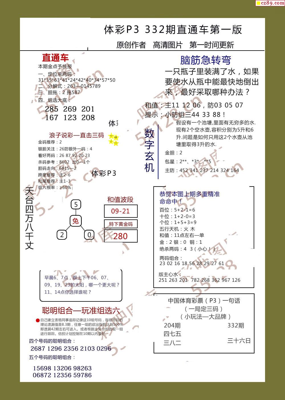 2025年333期牛彩网体彩P3画迷图谜汇总分享