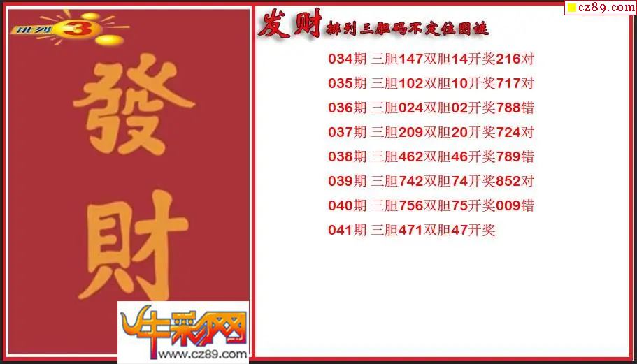 > 2026041期P3发财胆码不定位图谜